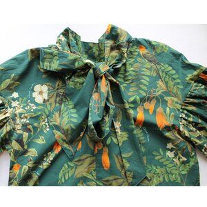 Cara Cara Diane Blouse / Medium / Botanical Birds Emerald Green Bow Balloon