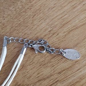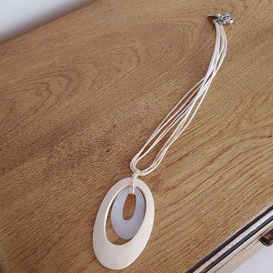 Beautiful light cream color and white pendant necklace. Hand crafted. Mother of Pearl center