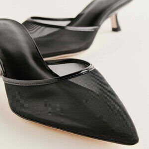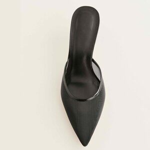 Caradise Women Black Kitten Closed Pointed Toe Mesh Slip On Backless Low Heels