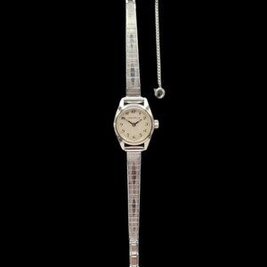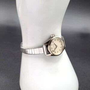 Refurbished with brand new genuine leather band (band can be changed to any in-stock leather, metal, mesh, nylon or rubber band free of charge-message me with your preference), Caravelle by Bulova vintage analog ladies watch featuring 7-Jewel wind up mechanical movement in excellent running condition. Case 20mm Band 6mm. Current band fits 7.75" adjustable down.