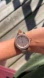 Caravelle by Bulova women’s stainless steel watch. Genuine leather band, rose gold colour. Some mild wear of the band. Watch face approx 3.5cm, watch band approx 1.1cm, band length approx 11cm.
