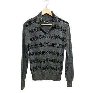 Carbon Gray Black Pattern 1/4 button Long Sleeve Knit Sweater Size S