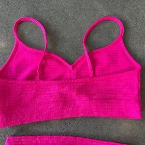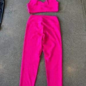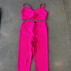 Bold, vibrant hot pink Carbon38 matching set featuring a ribbed textured fabric with amazing stretch and compression.