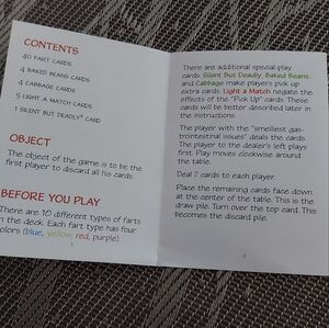 who wouldn't love this game. in euc. no cards missing. for ages 10 plus & 2 plus player. lol have fun plying a fart game.