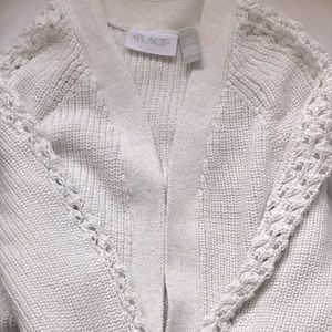 Girls white glittery cardigan no front closure, beautiful knot detail on sleeves.