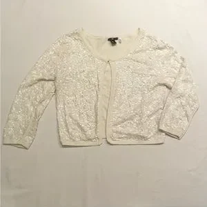Single clasp, open front cardigan. Slightly cropped. In perfect condition. Cream coloured.