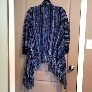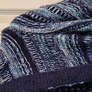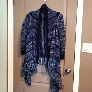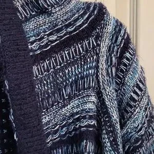 Love this cardigan. I just have way too many. unique knit, beautiful blue navy color picture doesn't know Justice it's still in great shape no phrase or knitting holes. more of a medium heavy weight to it.