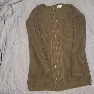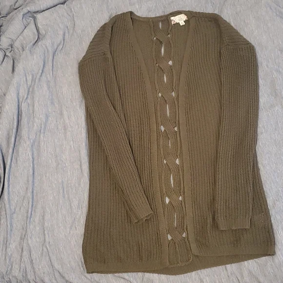 olive green cardigan cable detail on back pink rose brand
