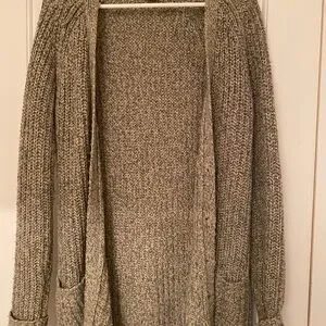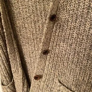 Soft knit cardigan by Roots. Ideal for cozy days. Fits larger