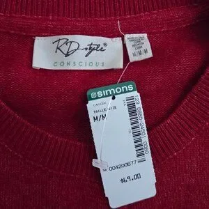 Beautiful red cardigan purchased from Simons, new with tags, size M, 6% wool.