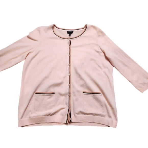 Cardigan Ribbed knit Pink Vintage vibe cotton blend Size 1xpetites TALBOTS