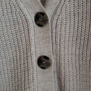 Light greyish blue button up cardigan. Worn only a few times. No pilling or pulls.