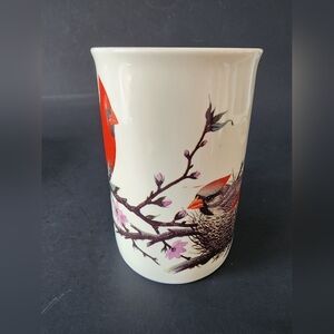 Enjoy your favorite beverage in this charming cream mug featuring a vibrant cardinal design. Perfect for bird lovers and nature enthusiasts.