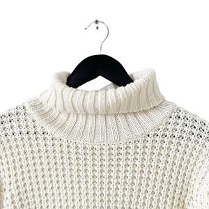Carducci Cream Cable Knit Chunky Turtleneck Pullover Sweater