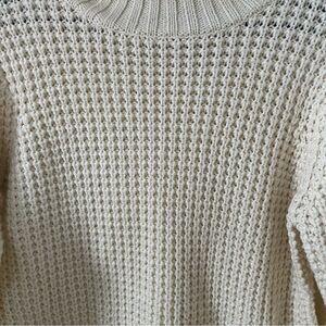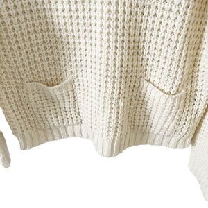 Warm & cozy cable knit off white sweater. Two pouch pocket on bottom of the sweater.