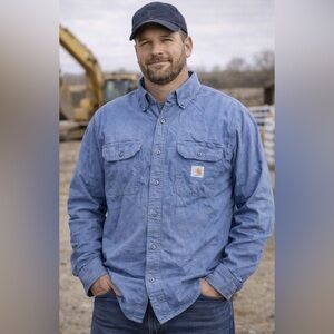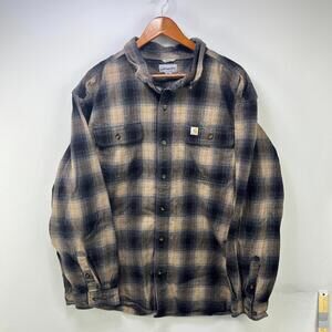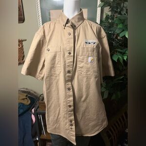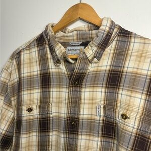 Carhartt Fort Long Sleeve Chambray Tan Button Down Shirt Size Large