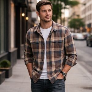 Stay stylish and comfortable with the Carhartt Men's Tan Shirt Jacket. Perfect for layering, this offers a classic look with its durable design.