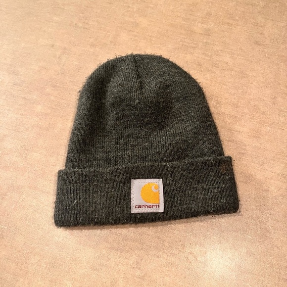 Warm heather gray beanie by Carhartt. Ideal for chilly days. This item is play due to some pilling. Otherwise GUC