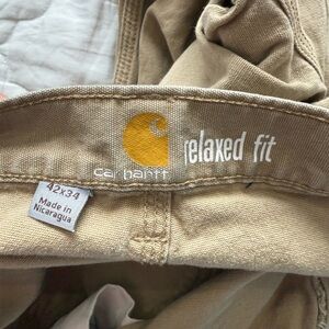 Durable Carhartt cargo pants. Classic khaki color. Comfortable fit.