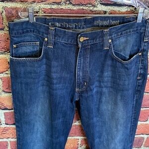 Carhartt Mens Dark Wash Relaxed Boot Cut Denim Jeans Size 38 by 34