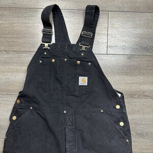 Carhartt Overalls Mens 42x30 Bib Black Double Knee Relaxed Fit Distressed