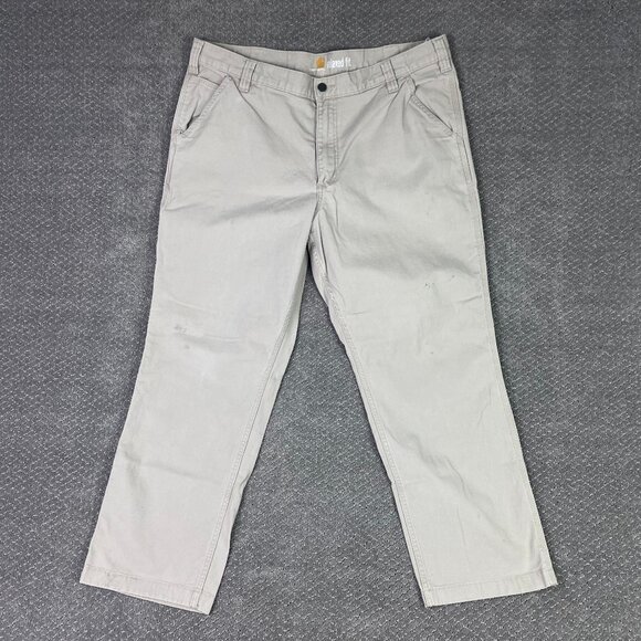 Carhartt Pants Men's 40 x 30 Measures 40 x 28.5 Beige Rugged Flex Canvas Work