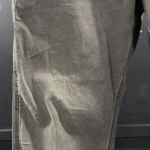 Good preowned condition - fraying and hole back right pocket, hole bottom left shin, oil and paint stains, lots of wear throughout