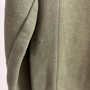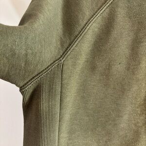 Women’s medium crewneck Features raised logo on the left arm. Colour is an olive green.