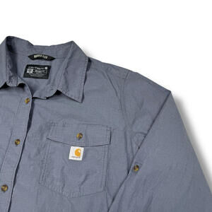 •Features: Relaxed fit, dual chest pockets with button closure, embroidered Carhartt logo patch, durable construction, button cuffs