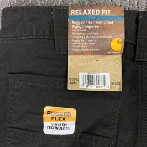 Carhartt Rugged Flex Knit Lined Rigby Dungaree Pants Men's 34 x 36 Gray Relaxed