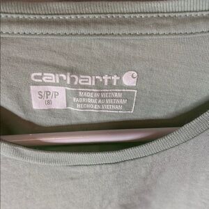 Sage green Carhartt shirt with logo on chest. Simple and versatile.