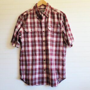 Carhartt Shirt Mens Medium Red Plaid Short Sleeve Button Down Relaxed Fit