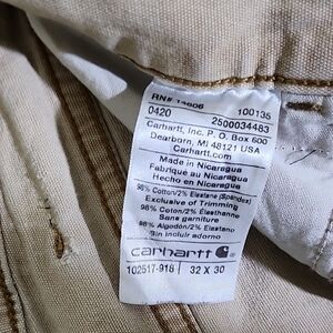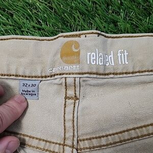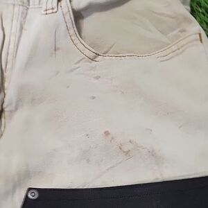 Comfortable Carhartt pants in a relaxed fit. Durable and stylish. Vintage with custom knee patches. repairs and some staining to make them extra cool