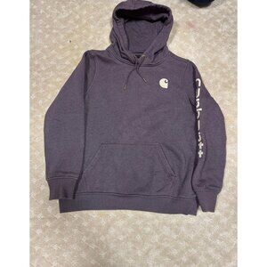 Carhartt Women's L Hoodie Purple Blackberry Heather Sleeve Logo Midweight 12-14