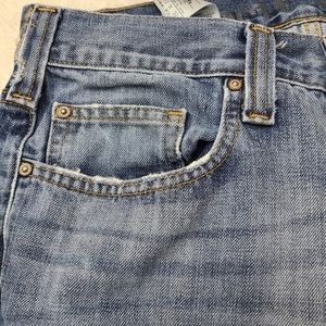 Crafted from a durable and comfortable distressed blue denim, they feature a relaxed fit with classic five-pocket styling.