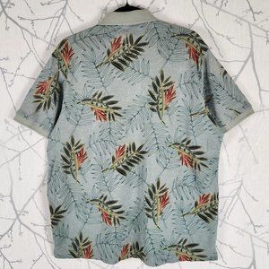 Caribbean Green Leaves Printed Silk Cotton Blend Polo