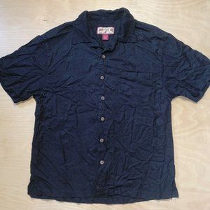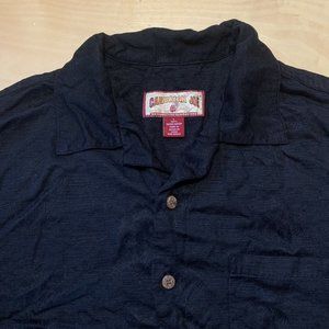 Caribbean Joe Hawaiian Shirt Size L Rayon-Poly Palm Tree Button Down Black