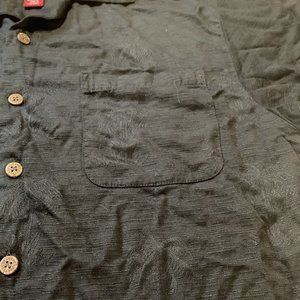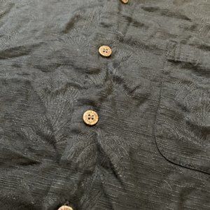 Caribbean Joe Hawaiian Shirt Size L Rayon-Poly Palm Tree Button Down Black.