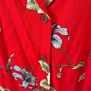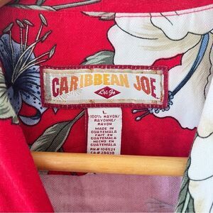 Caribbean Joe, red floral blouse, sleeveless button down, tropical print, collared top, vacation wear, summer blouse, bold floral pattern, breezy and lightweight, resort-ready style, casual chic, beach vacation top, island vibes, vibrant red, feminine florals, warm weather staple, breathable fabric, easy layering piece, relaxed fit, garden party look, timeless tropical, laid-back elegance, colorful and fun, for someone who loves bold prints, cheerful fashion, and effortless getaway style.