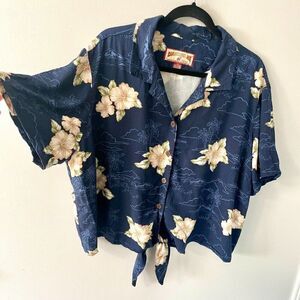 Caribbean Joe Hawaiian Button Down Tie Front Cropped Blouse | Size 3x