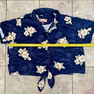 Caribbean Joe Hawaiian Button Down Tie Front Cropped Blouse | Size 3x