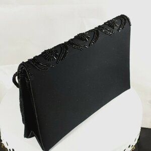 Carla Marchi Evening Purse/Clutch Black Satin Crossbody Hand-Beaded