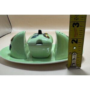 Carlton Ware Cruet Set on Tray Hazelnut 2330 Rare Green Gloss