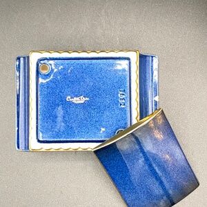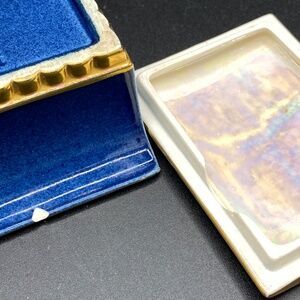 Gorgeous little Blue Royal box with lid and gold trim. Fabulous asiatic style. Box has some damage: two chips, inside and out, Please see photos. Still a beauty and a great bargain! Approximate size: 241g; 13cm/5" L x 9cm/3.5" W x 4cm/1.5".
