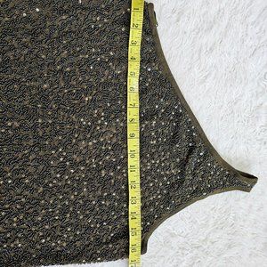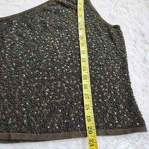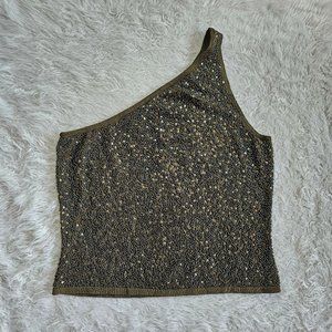 Check out this Carmen Marc Valvo Collection Women's Olive Green Beaded Single Shoulder Strapped Top in great pre-owned condition, some wear on the strap lining but no rips no stains on it.