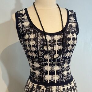 Carmen Marc Valvo presents a chic knitstretch dress suitable for versatile occasions, combining comfort with style.