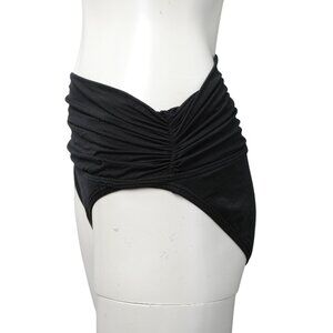 Carmen Marc Valvo Ruched High Rise Bikini Bottom Swimsuit Black Stretch Beach