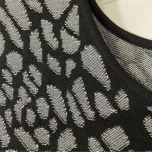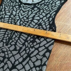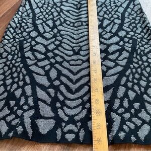 Carmen Mark Valvo Black Grey Knit Midi Dress M Print Bodycon