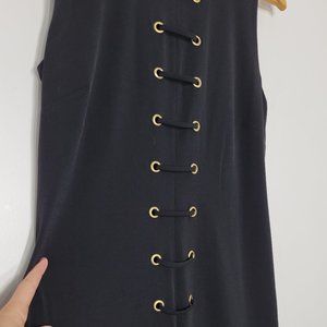Vintage Carmen Women's Black Sleeveless Lace Up Grommet Trim Midi Cocktail Party Dress S