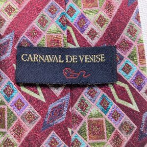 Carnaval De Venise Men's Tie Red 100% Silk Made in Italy